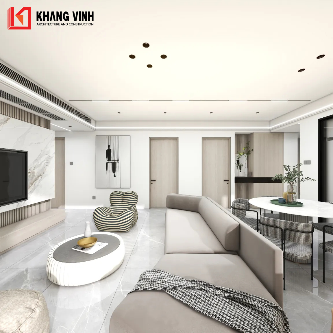 Phối cảnh nội thất hiện đại biệt thự mái Thái 160m2