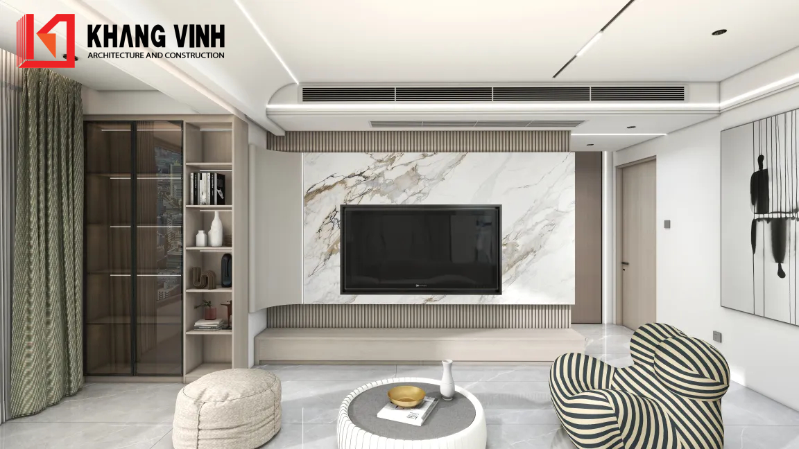Phòng khách đầy đủ tiện nghi tích hợp nhiều chức năng