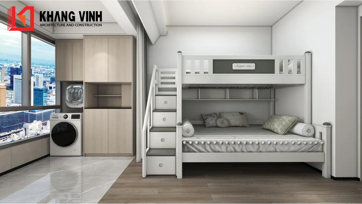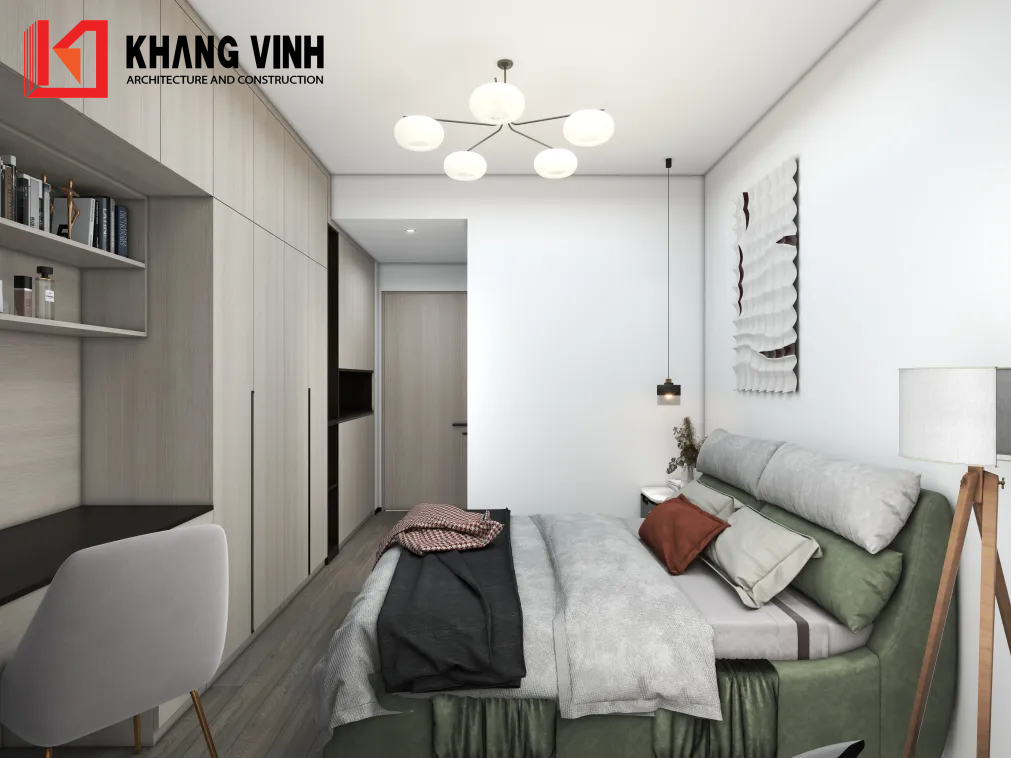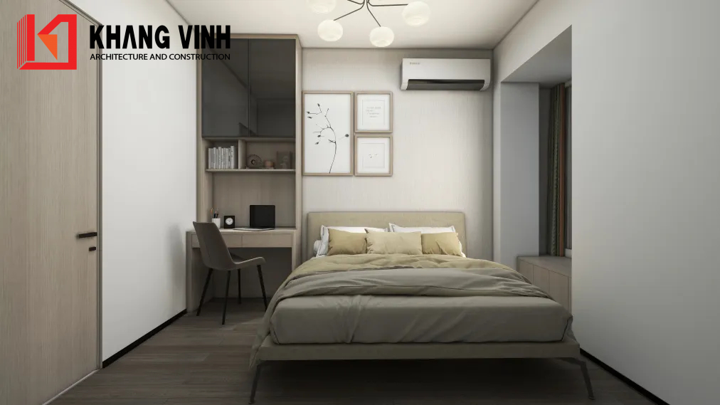 Với sự đầy đủ tiện nghi tích hợp nhiều chức năng. Cùng sự hài hòa từ màu sắc của tổng thể và màu sắc của nội thất trang trí trong căn phòng là tone màu trắng, nâu màu xám tạo nên cảm giác thoải mái cho gia chủ.